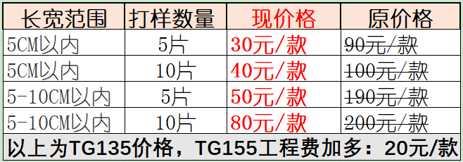 1)单片出货长宽在5CM以内打样5片 仅需:30元/款全国包邮!